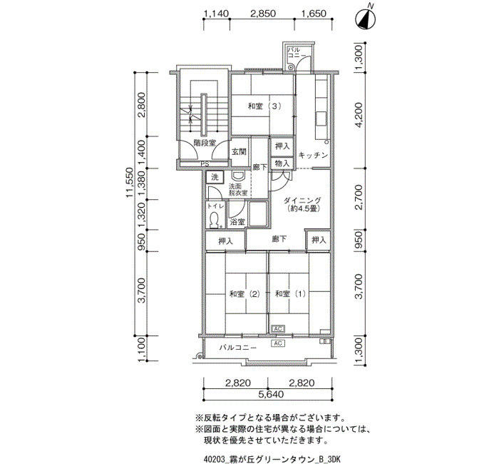 | 間取り | 3DK | 床面積 | 64㎡ |