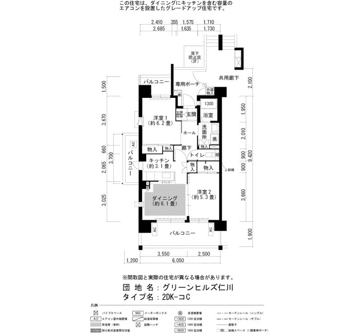 | 間取り | 2DK | 床面積 | 55㎡ |