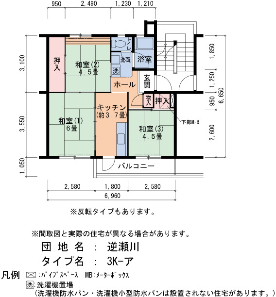 間取り 3K 床面積 45㎡