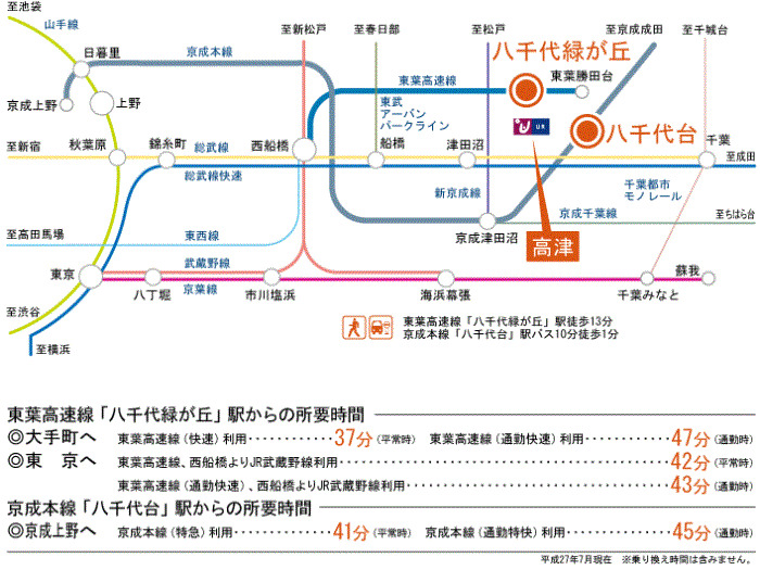 京成本線 『 八千代台駅 』 バス7分 バス停『団地三叉路』 徒歩1分 東葉高速鉄道 『 八千代中央駅 』 徒歩36分 |