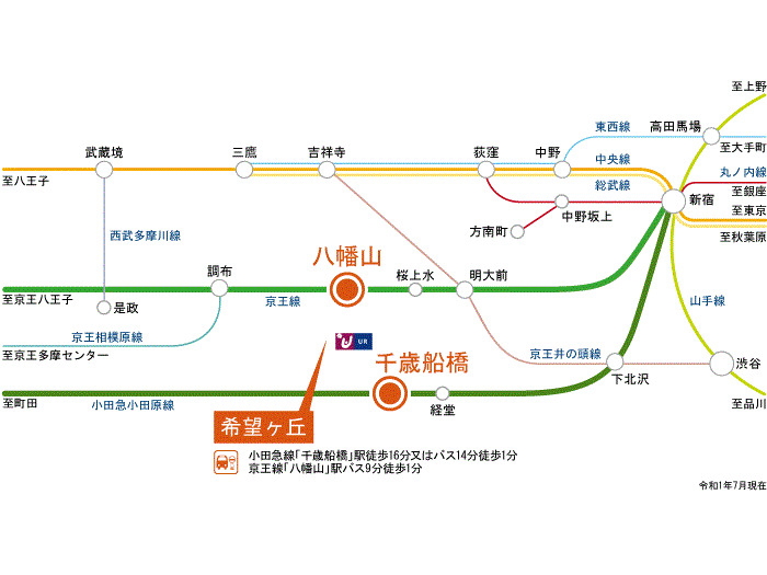 京王線 『 八幡山駅 』 バス5分 バス停『希望ヶ丘団地』 徒歩1分 小田急小田原線 『 千歳船橋駅 』 徒歩16分 |