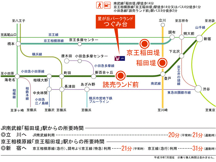 京王相模原線 『 京王稲田堤駅 』 徒歩15分 小田急小田原線 『 読売ランド前駅 』 バス9分 バス停『星ヶ丘歩道橋』 徒歩2分 |