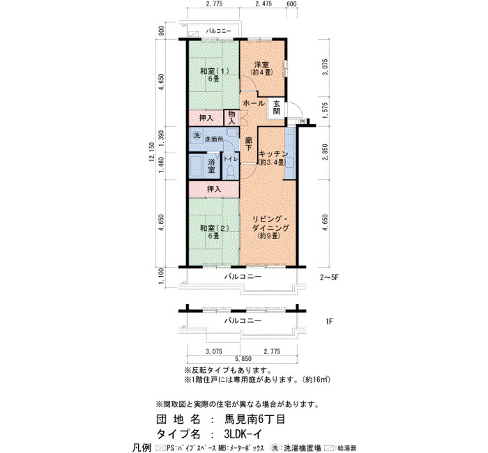 | 間取り | 3LDK | 床面積 | 68㎡ |