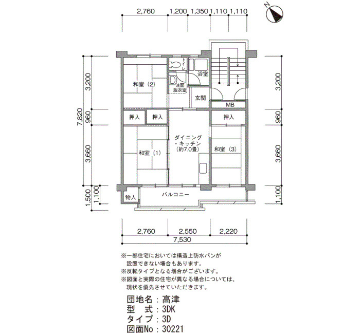 | 間取り | 3DK | 床面積 | 57㎡ |