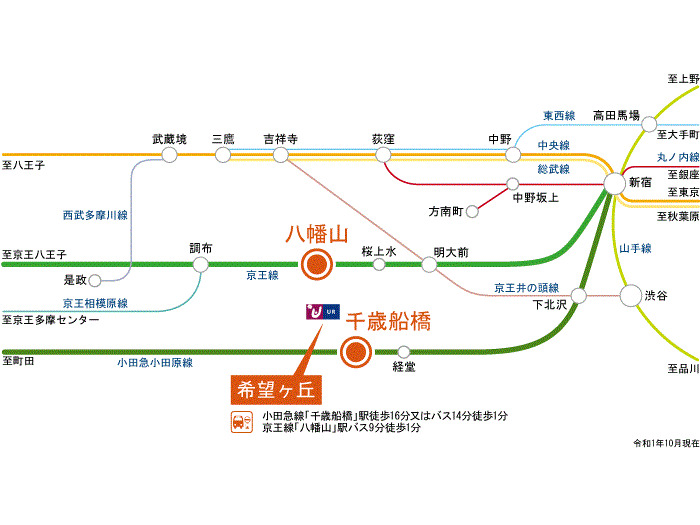 京王線 『 八幡山駅 』 バス5分 バス停『希望ヶ丘団地』 徒歩1分 小田急小田原線 『 千歳船橋駅 』 徒歩16分 |