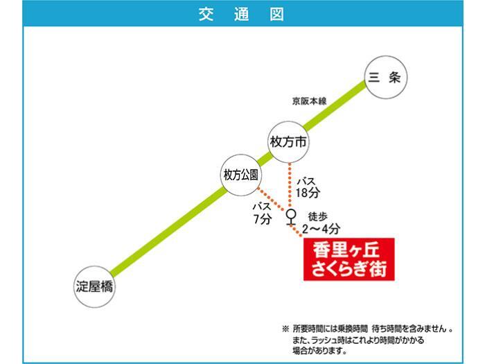 京阪本線 『 香里園駅 』 バス10分 バス停『新香里』 徒歩6分 京阪本線 『 枚方市駅 』 バス18分 バス停『五本松』 徒歩2分 |