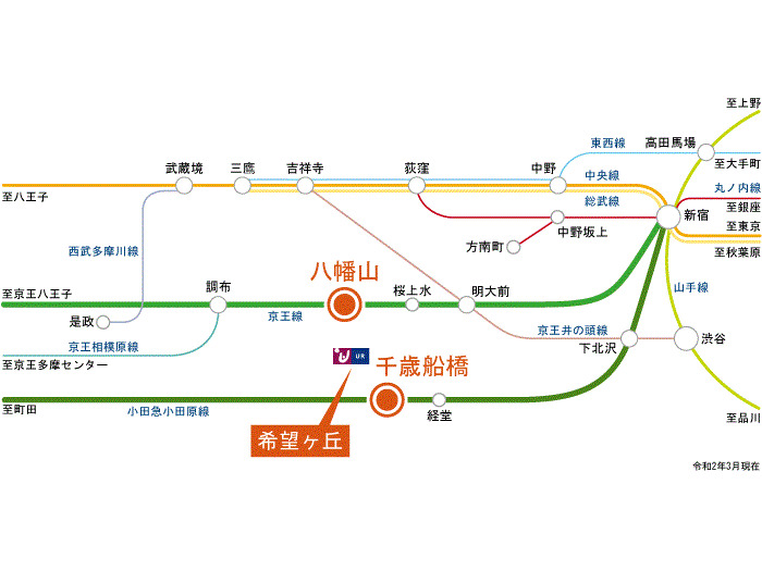 京王線 『 八幡山駅 』 バス5分 バス停『希望ヶ丘団地』 徒歩1分 小田急小田原線 『 千歳船橋駅 』 徒歩16分 |