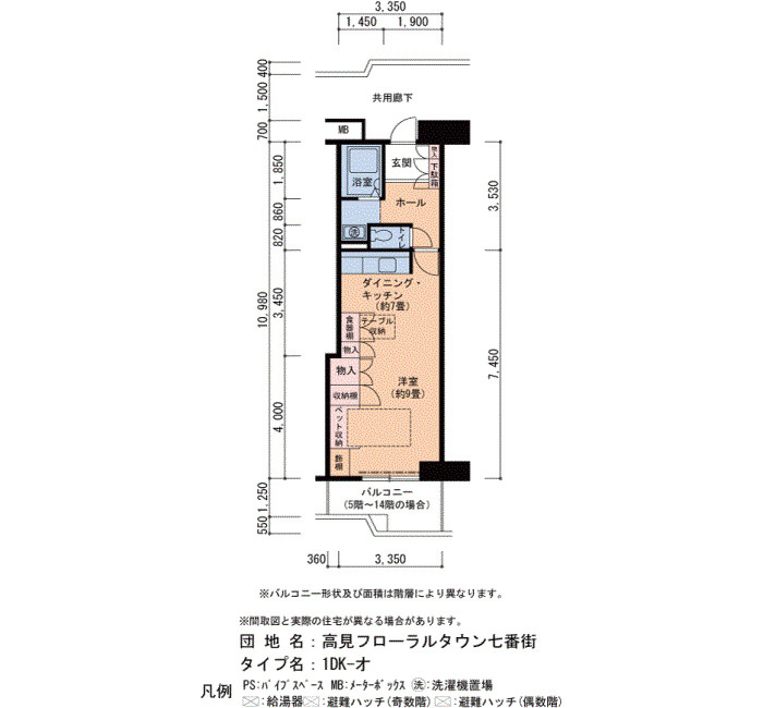 | 間取り | 1DK | 床面積 | 38㎡ |