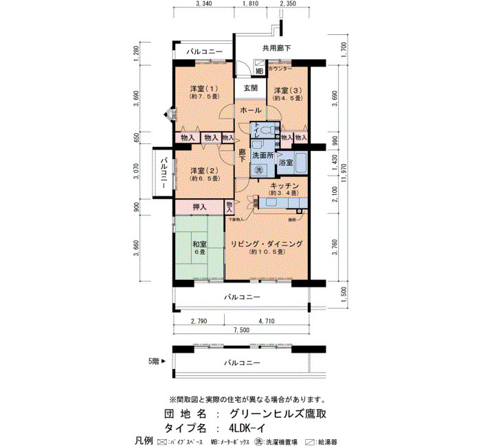 間取り ご成約済 5階 4LDK 82㎡ 詳細