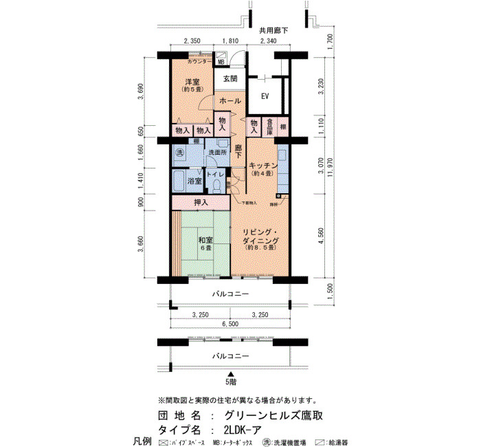 間取り ご成約済 5階 2LDK 57㎡ 詳細
