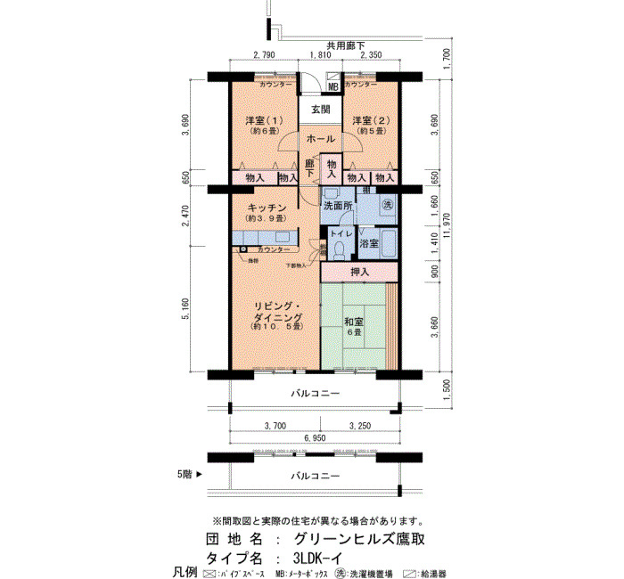 間取り ご成約済 5階 3LDK 68㎡ 詳細